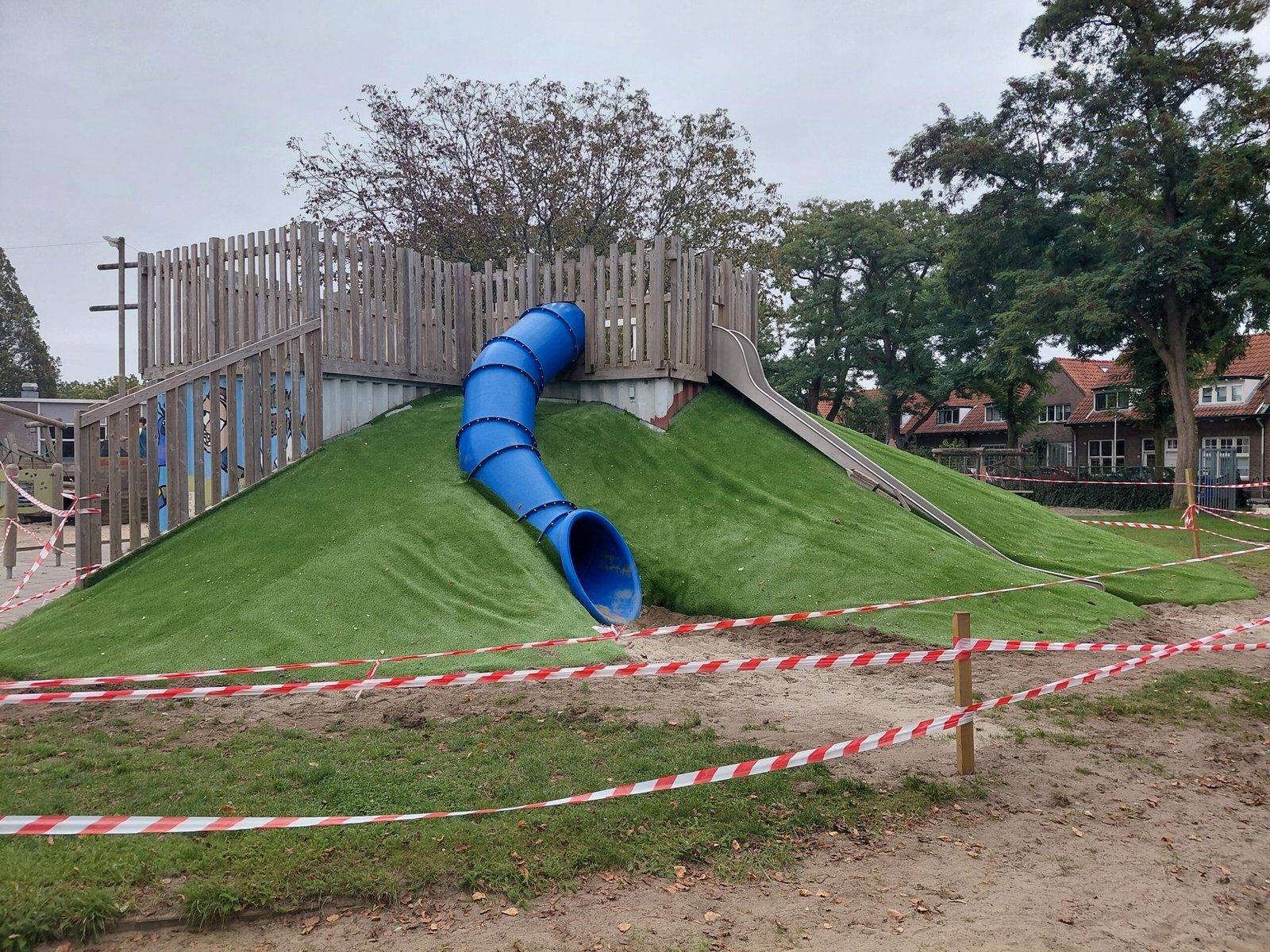 Ons eigen speeltoestel “Glijplezier Bestevaer” is de afgelopen week getransformeerd van een bruine, hobbelige bult grond naar een prachtige groenblijvend heuvellandschap.
