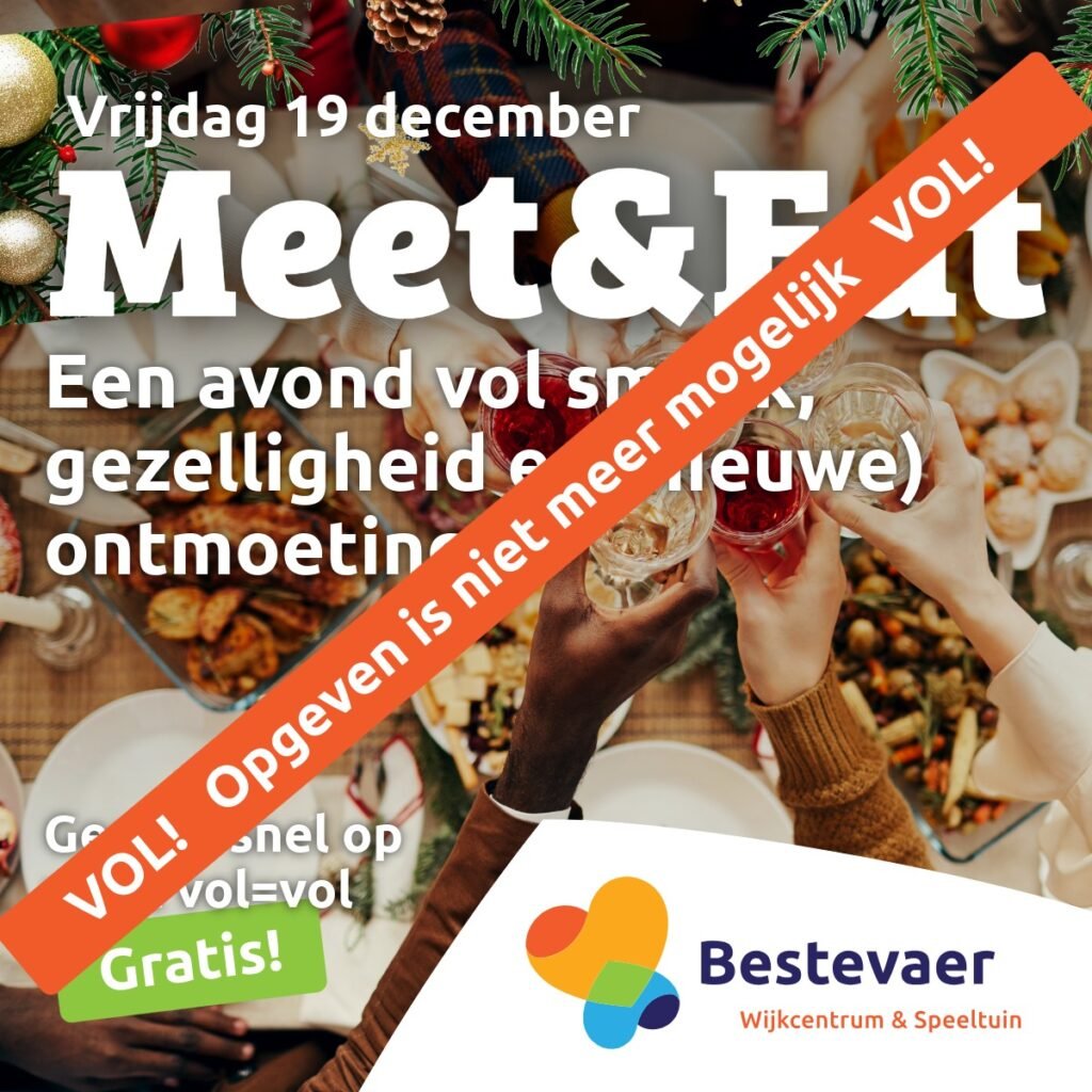 De feestdagen zijn in aantocht! Op vrijdag 19 december nodigt Bestevaer Wijkcentrum alle bewoners van de Wipstrik uit voor Meet&Eat, een avond vol smaak, warmte en nieuwe ontmoetingen.